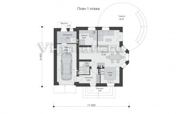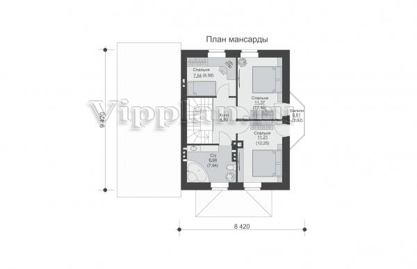 | Размеры дома: | 9.42м×11.92м |
